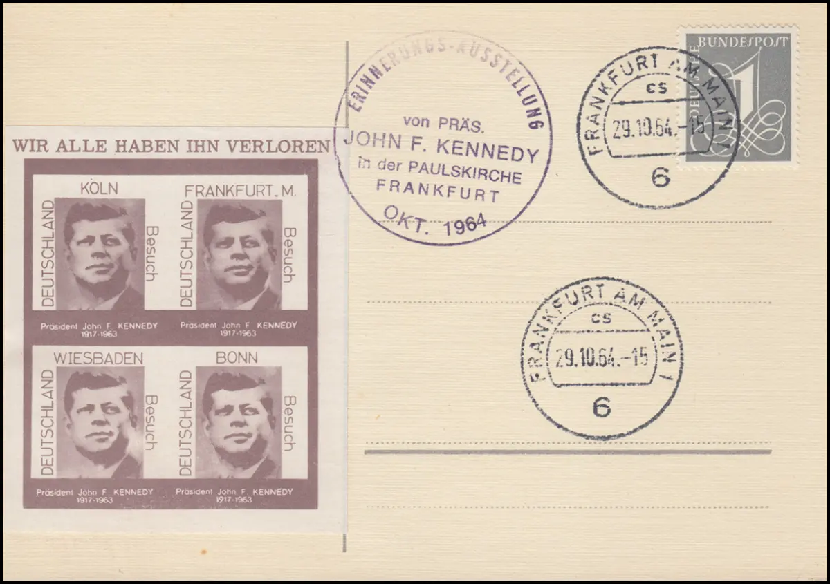 SSt ERINNERUNGSAUSSTELLUNG JOHN F. KENNEDY OKT. 1964 auf PK mit Vignette