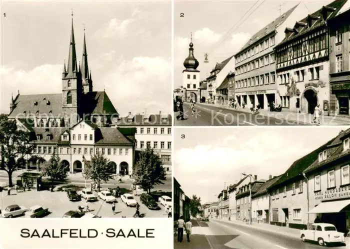 Saalfeld_Saale Marktplatz Kirche HO Gaststaette Blankenburger Tor Strasse des Friedens Saalfeld_Saale postalisch nicht gelaufen 1977 Erhaltung siehe scans [FriedD77] Frierer