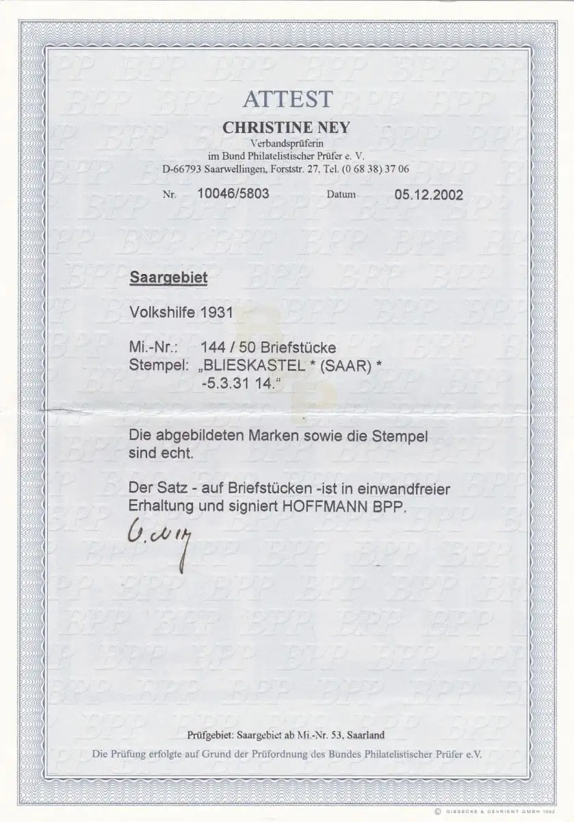 Saar: Mi Nr. 144-150, cacheté, BPP Battest