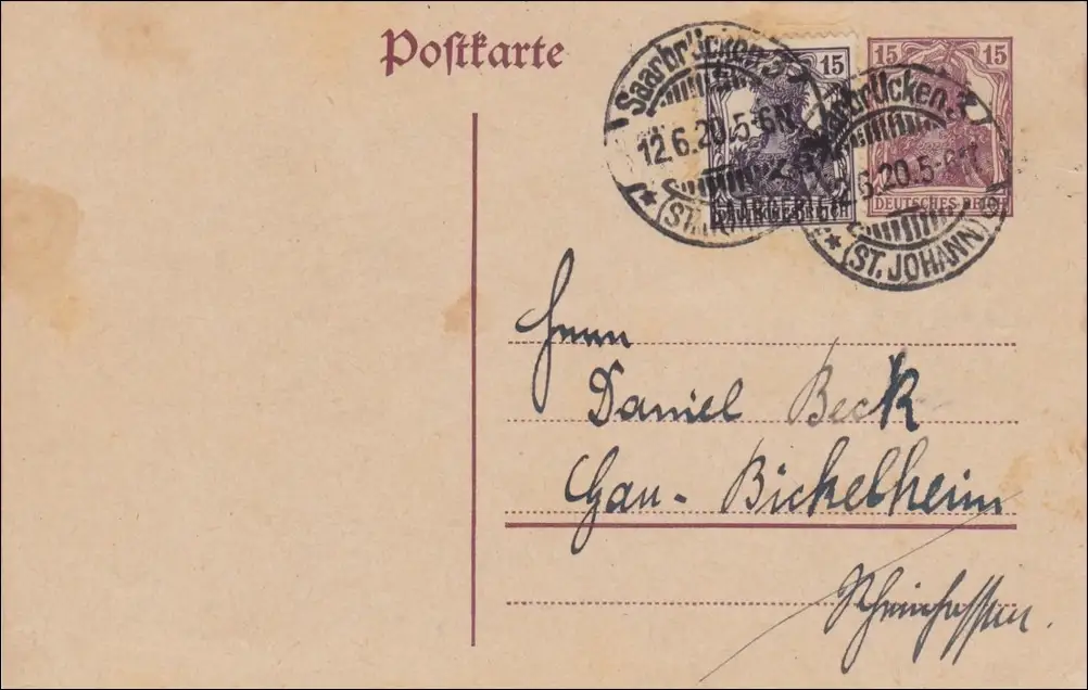 Sarre: Gentralgebiet: Germania de Sarrebruck à Bickelheim 1920