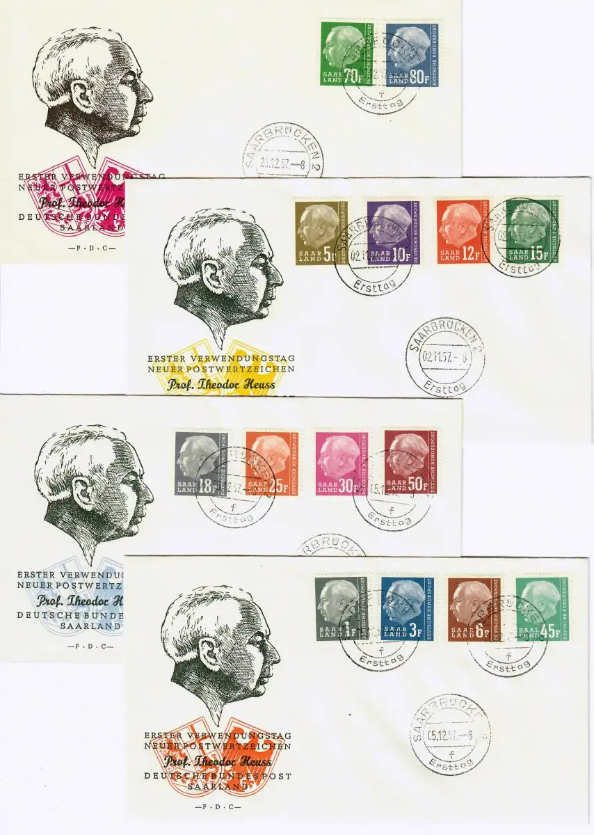 Sarre: Min° 409-428, 8x FDC Theodor Heuss Sarrebruck