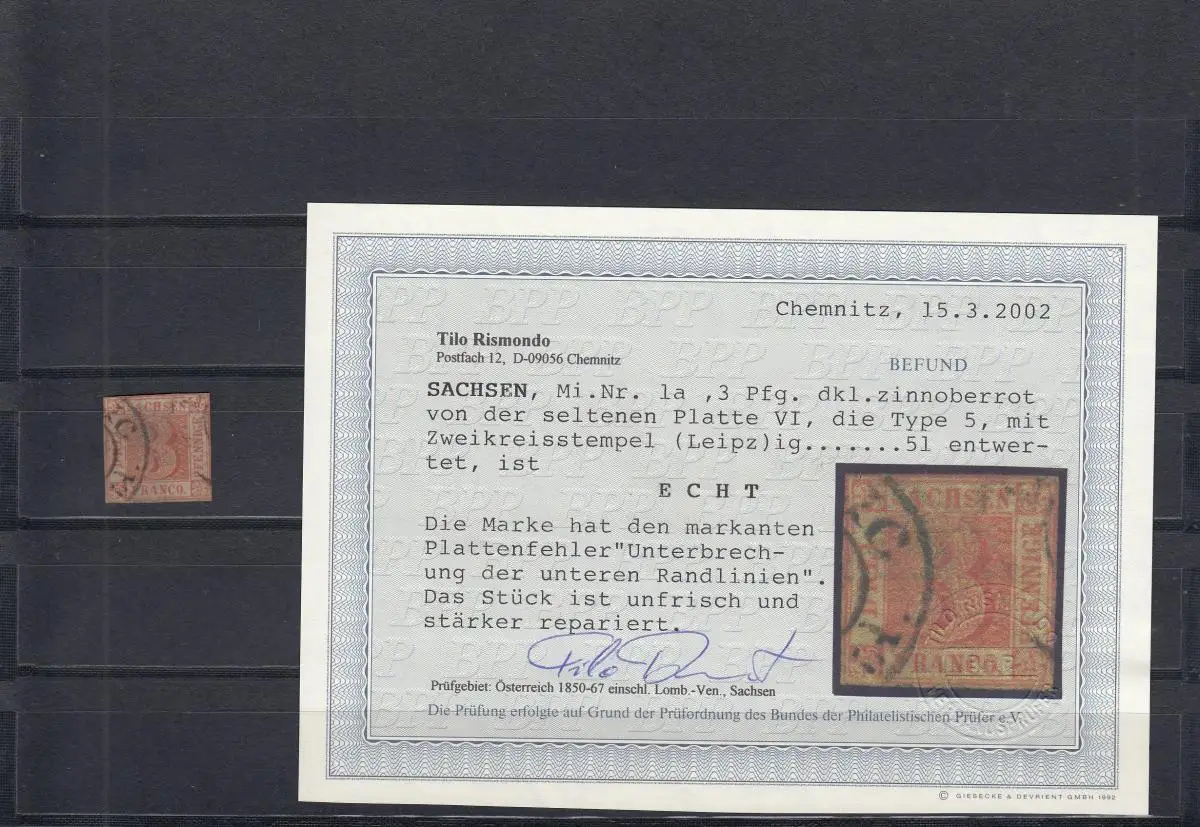 Saxe: Min. 1a, Platte VI, Type 5, cacheté Leipzig, BPP Attest