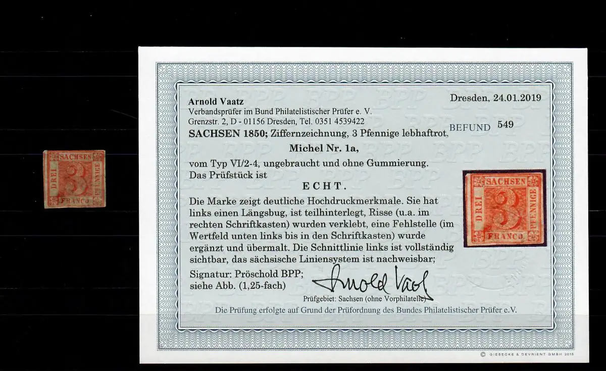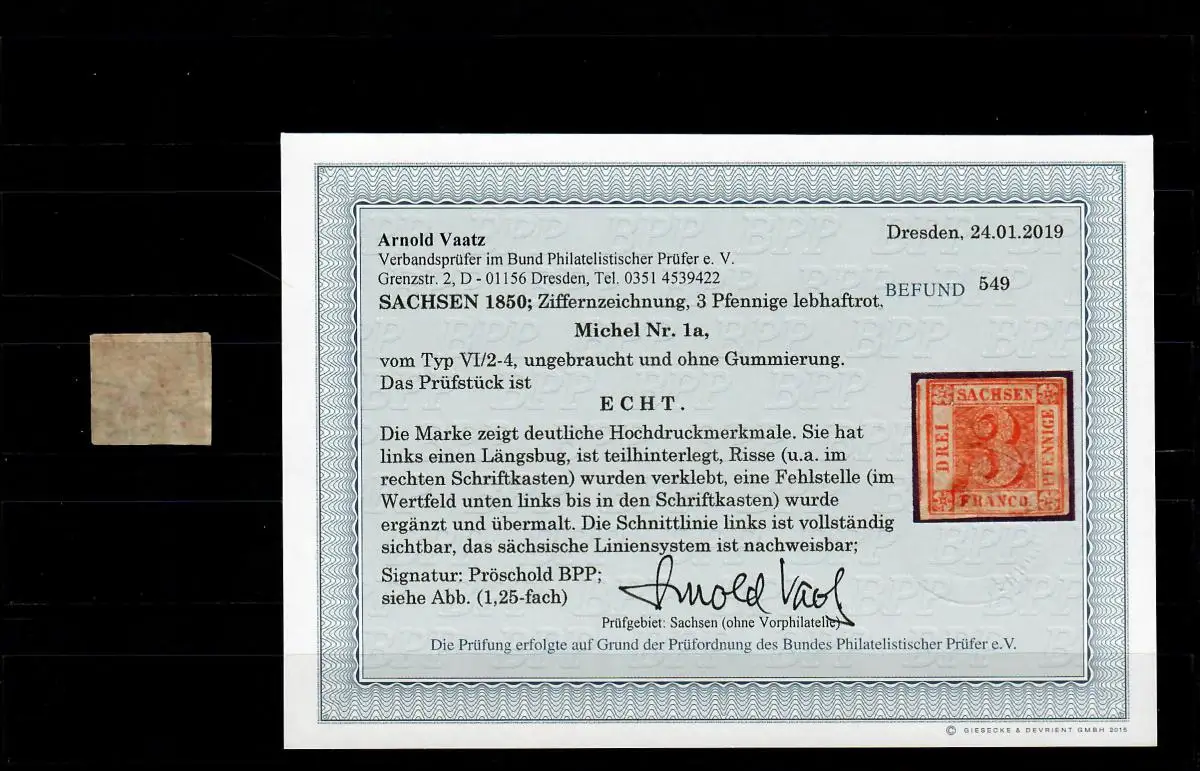 Saxe: Min° 1a, sans caoutchouc, non utilisé, résultat BPP