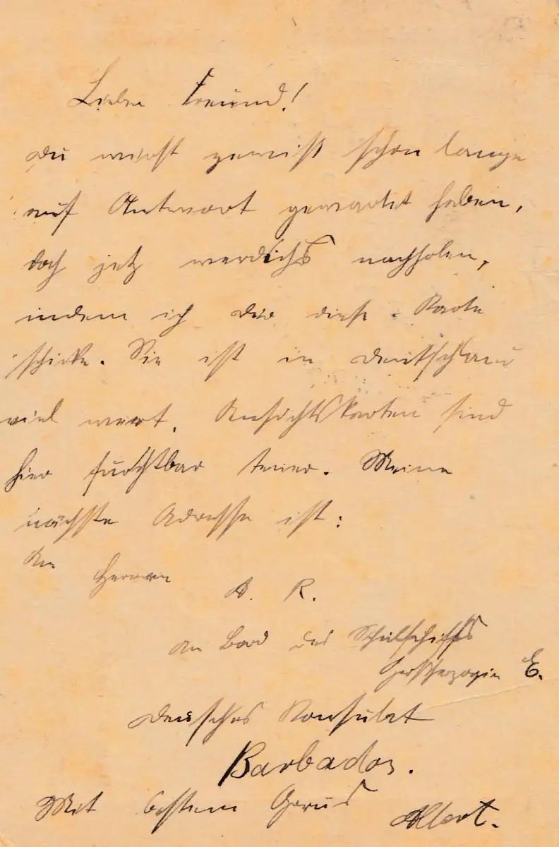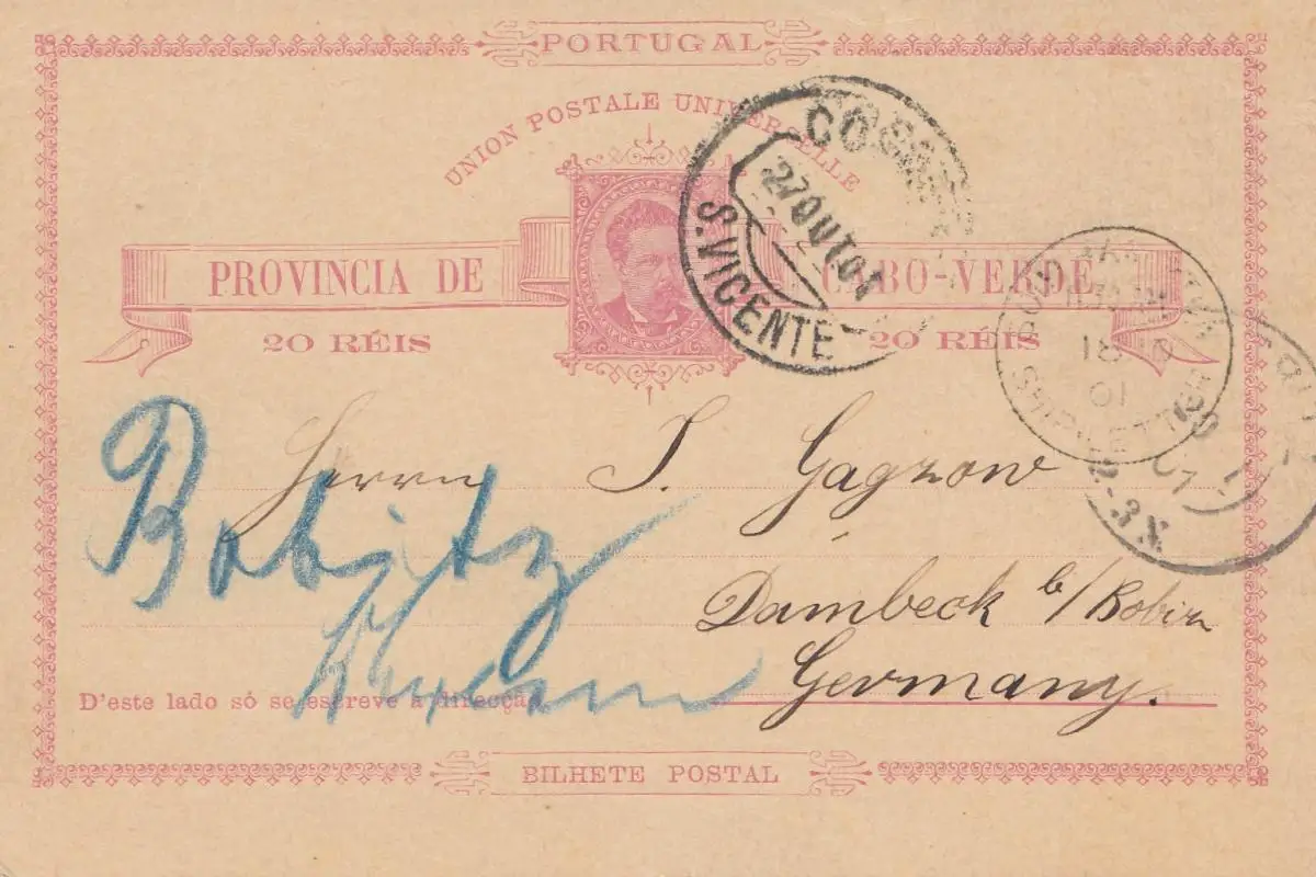 Saint Vincent 1901: poost card adress Barbade to Dambeck/Berlin