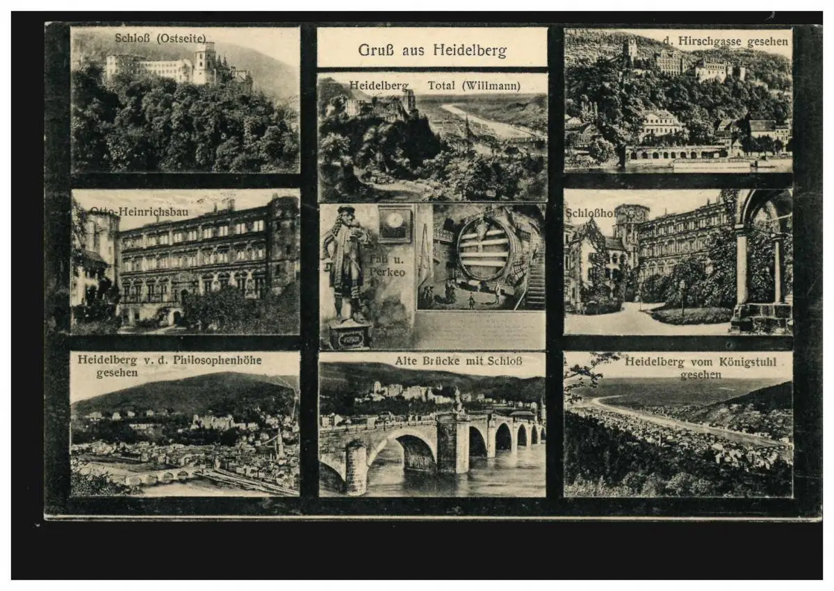 Salutation AK de Heidelberg avec 9 images, maison d'édition Josef Ignatz Vogt, 23.3.1025