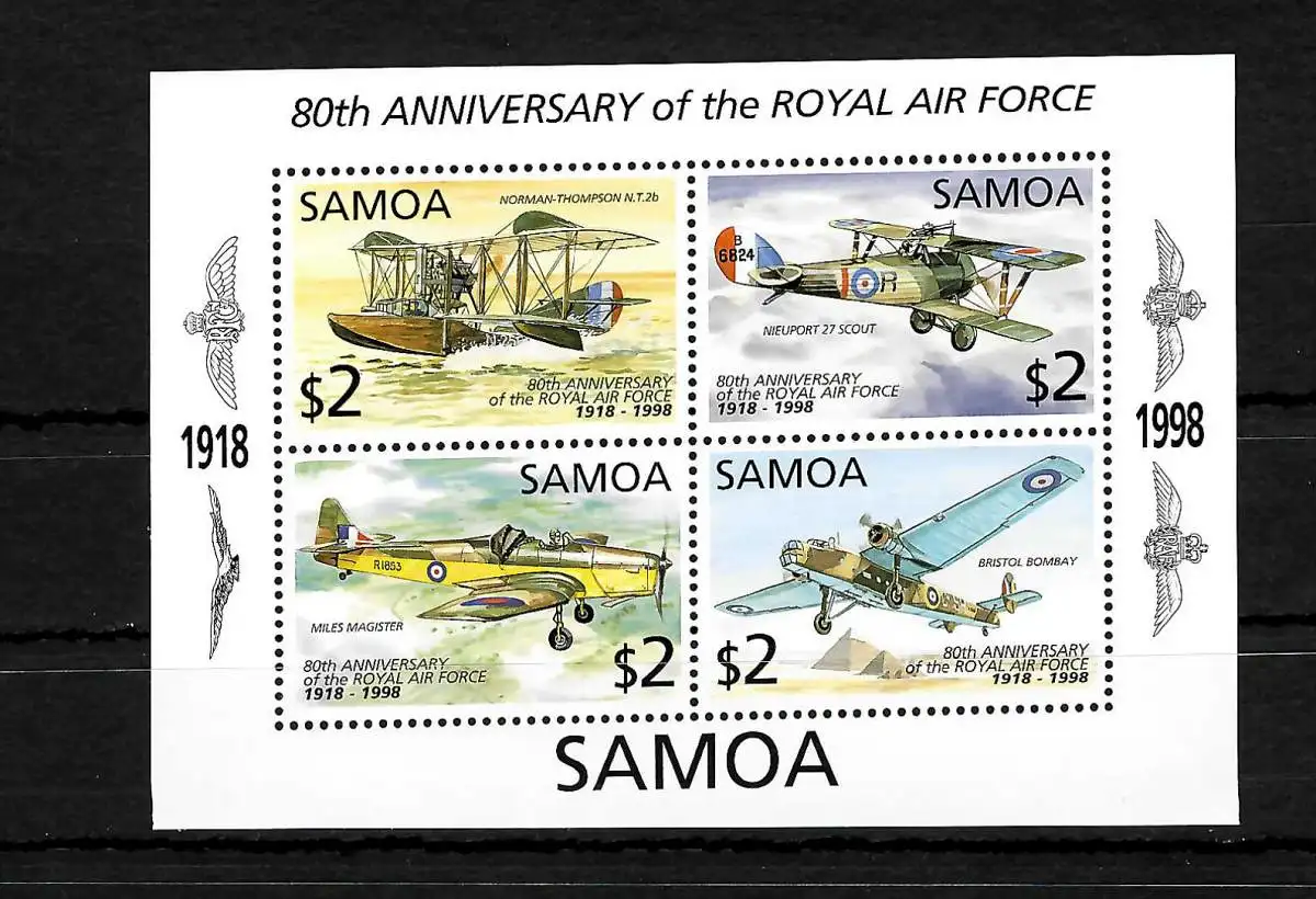 Samoa: 80 ans Royal Air Force, RAF, #885-887, bloc #64