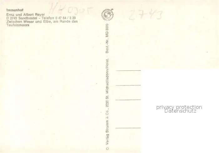 Sandbostel Immenhof Schwanenteich Sandbostel postalisch nicht gelaufen nach 1965 Erhaltung siehe scans [WerneD78] WernPID7