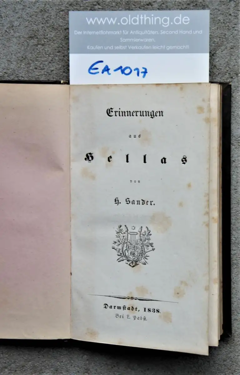 Sander, Heinrich: Des souvenirs d'Hellas.