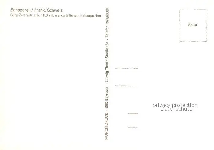 Sanspareil Burg Zwernitz mit markgraeflichem Felsengarten Sanspareil postalisch nicht gelaufen nach 1965 Erhaltung siehe scans [WerneD78] WernPID7