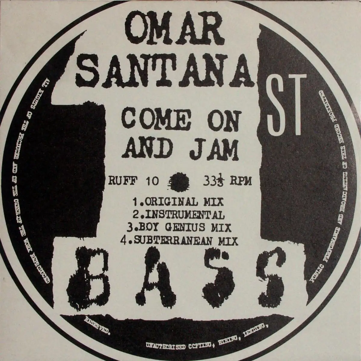12" Maxi Omar Santana - Come On And Jam, Zustand Platte M- Hülle M-; Made in United Kingdom 1991 1st Bass RUFF 10, Tracks Original Mix 6:21, Instr. 3:27, Boy Genius Mix 5:28, Subterranean Mix 4:16