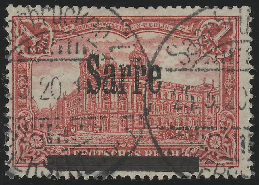 Sarre 17A empire de la sarre imprimé sur 1 Mark, cacheté