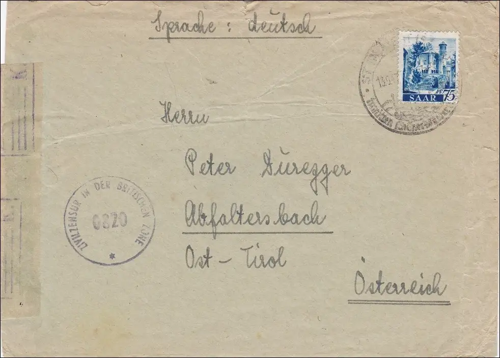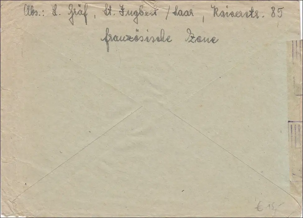 Sarre: 1947 St. Ingbert en Autriche avec censure zone britannique
