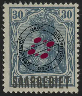 Sarregebiet 47 Germania SAARZERGIEN 30 Pf, cacheté