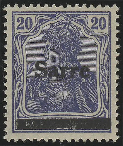 Sarregebiet 8III Germania Sarre-Type III sur 20 Pf, ** post-fraîchissement