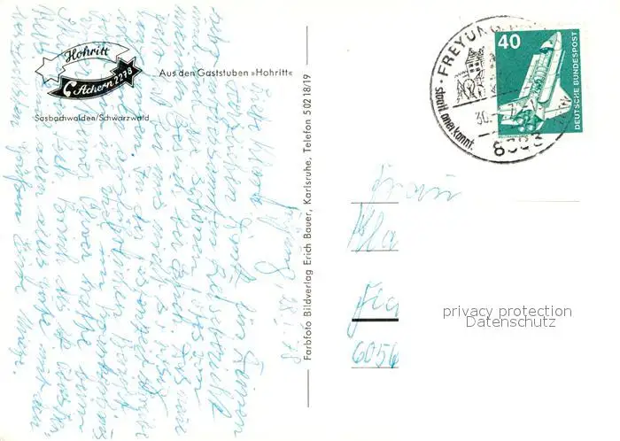 Sasbachwalden Sternen Wirtshaus Hohritt Bauernstube Sasbachwalden postalisch gelaufen 1978 Erhaltung siehe scans [WerneD78] WernPID7