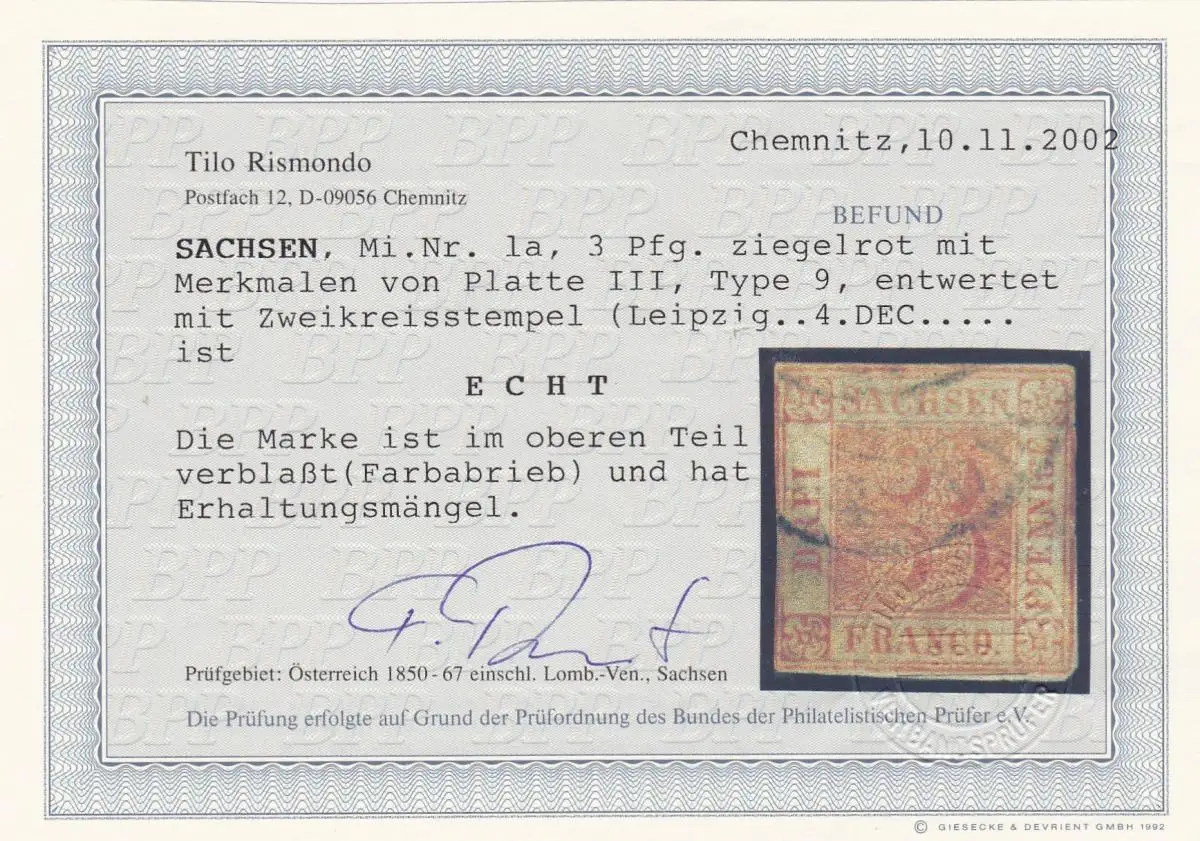 Saxe: MiN° 1a, cacheté, BPP résultat