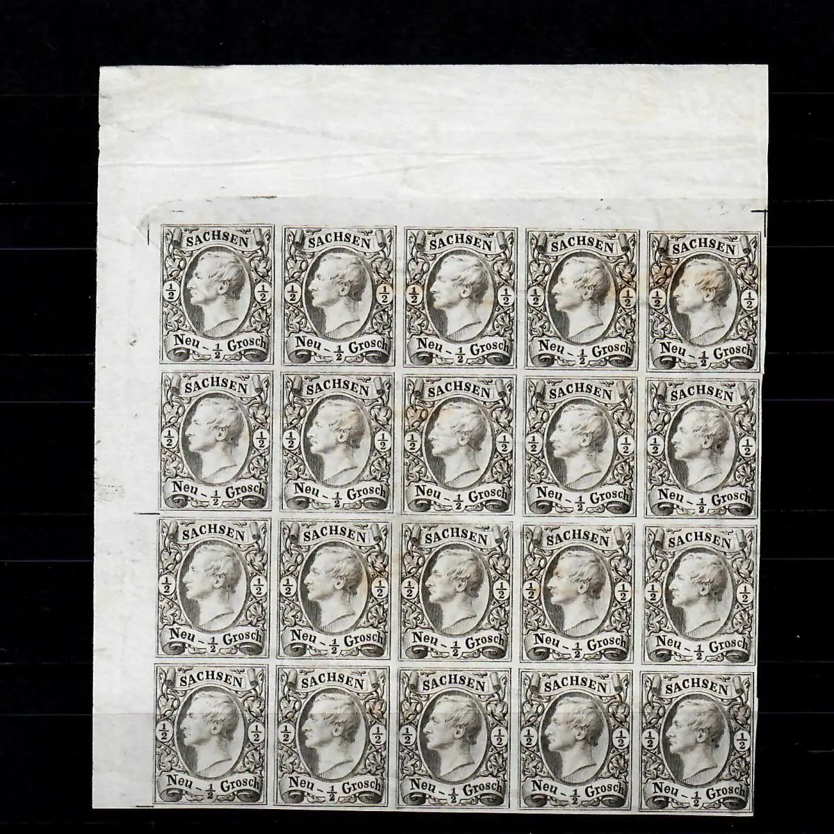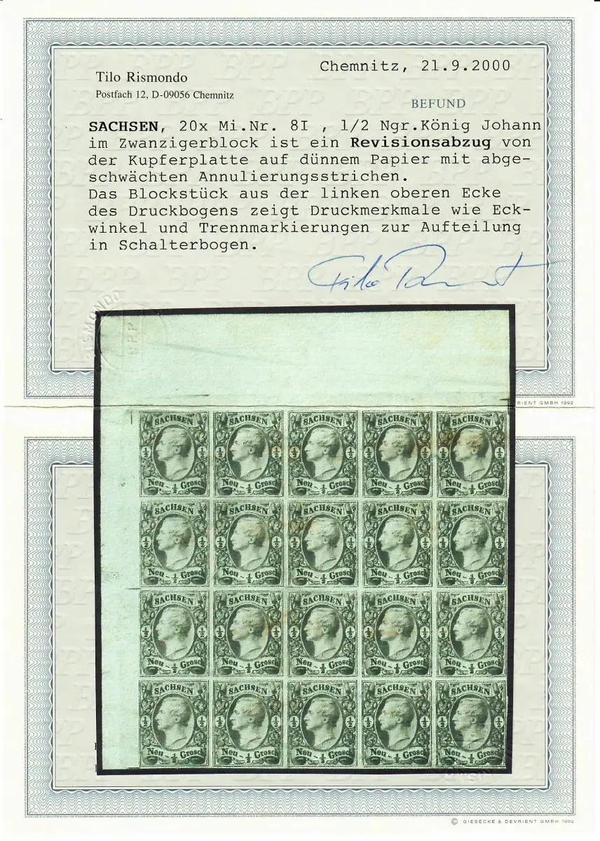 Saxe: Min° 8I, 20 bloc du coin, sans caoutchouc, résultat BPP
