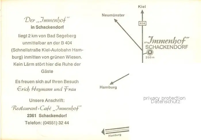 Schackendorf_Bad_Segeberg Der Immenhof Gastraum Kegelbahn Schackendorf_Bad_Segeberg postalisch nicht gelaufen nach 1965 Werbekarte (keine Postkarte) Erhaltung siehe scans [WerneD78] Werbekarte (keine Postkarte) WernPID7