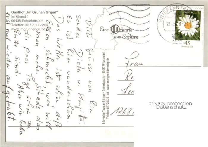 Scharfenstein_Erzgebirge Gasthof Zum gruenen Grund Gaststaette Partie am Bach Scharfenstein_Erzgebirge postalisch gelaufen 2008 Erhaltung siehe scans [FriedD77] Frierer