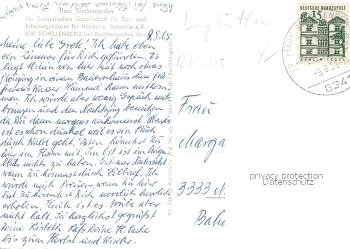 Schellenberg_Marktschellenberg Haus Berchtesgaden Kur- und Erholungshaus Alpenpanorama Schellenberg postalisch gelaufen 1965 Erhaltung siehe scans [FriedD77] Frierer