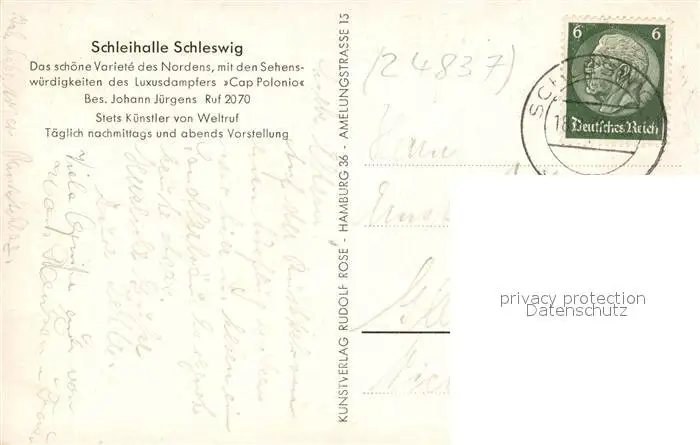 Schleswig_Holstein Schleihalle Segelboot Schleswig_Holstein postalisch gelaufen 1938 Erhaltung siehe scans [FriedD77] Frierer