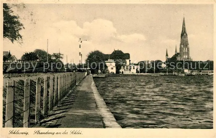 Schleswig_Holstein Strandweg an der Schlei Blick zur Kirche Schleswig_Holstein postalisch gelaufen 1921-1965 Erhaltung siehe scans [FriedD77] Frierer
