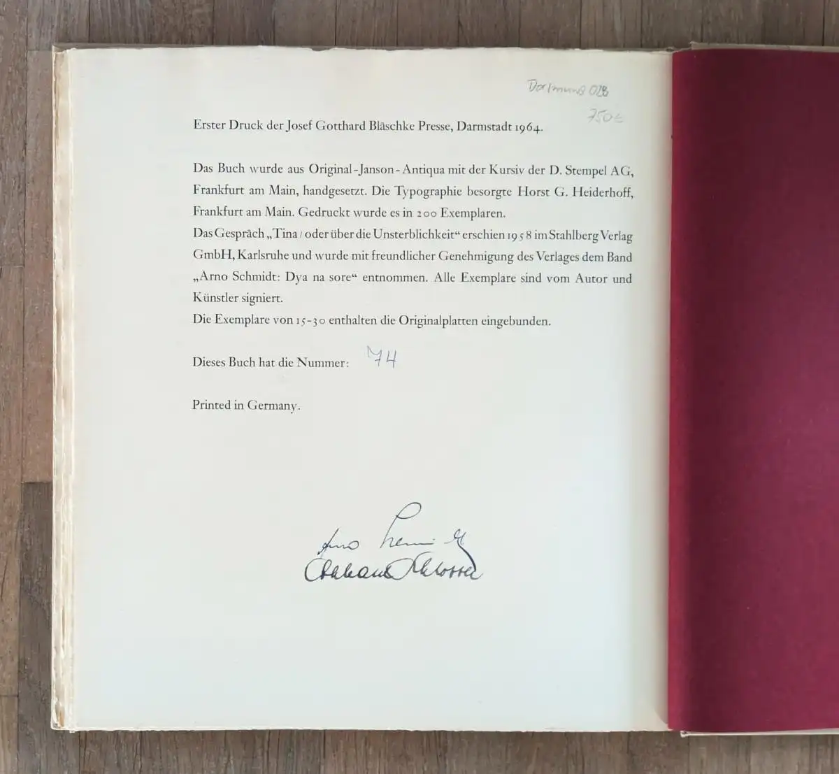 Schmidt, Arno: Tina oder Über die Unsterblichkeit.