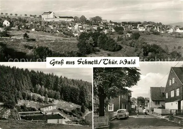 Schnett Panorama Freibad Strassenpartie Schnett postalisch nicht gelaufen 1984 Erhaltung siehe scans [FriedD77] Frierer