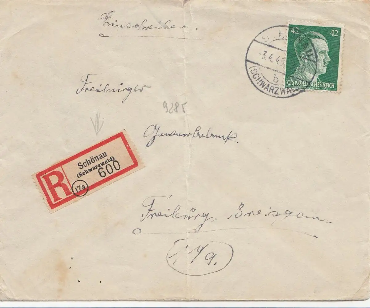 Schönau/Nwarzwald 3.4.1945 !!! vers Fribourg: TRÈS PLUS TARD