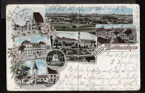 Schussenried. Gruss aus. - Gelaufen 1902. Knick. (NPLZ 88427).