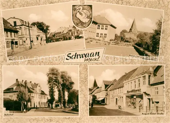 Schwaan Markt Polytechnische Oberschule Bahnhof August Bebel Strasse Schwaan