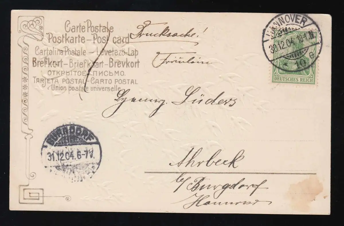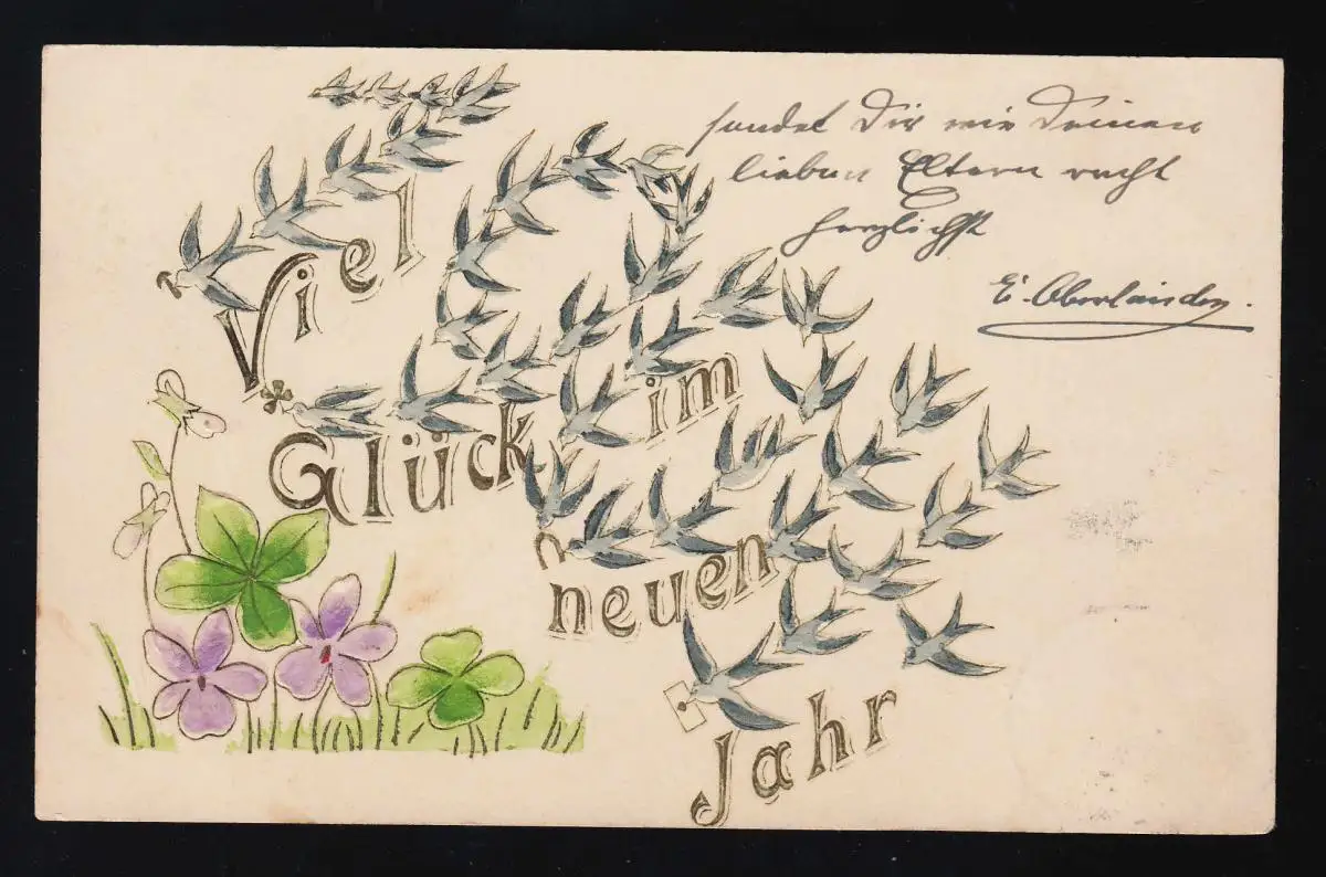 Schwalben Fleurs Kleeblaft Lettre nouvelle année Hanovre/ Burgdorf 30.+ 31.12.1904
