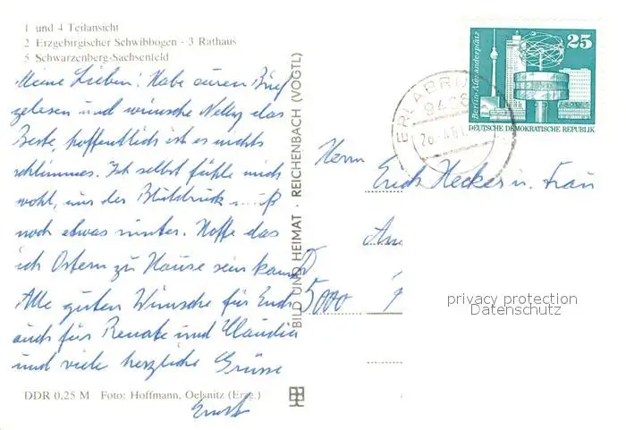 Schwarzenberg_Erzgebirge Teilansicht Erzgebirgischer Schwibbogen Rathaus Sachsenfeld Schwarzenberg Erzgebirge postalisch gelaufen 1981 Erhaltung siehe scans [FriedD77] Frierer