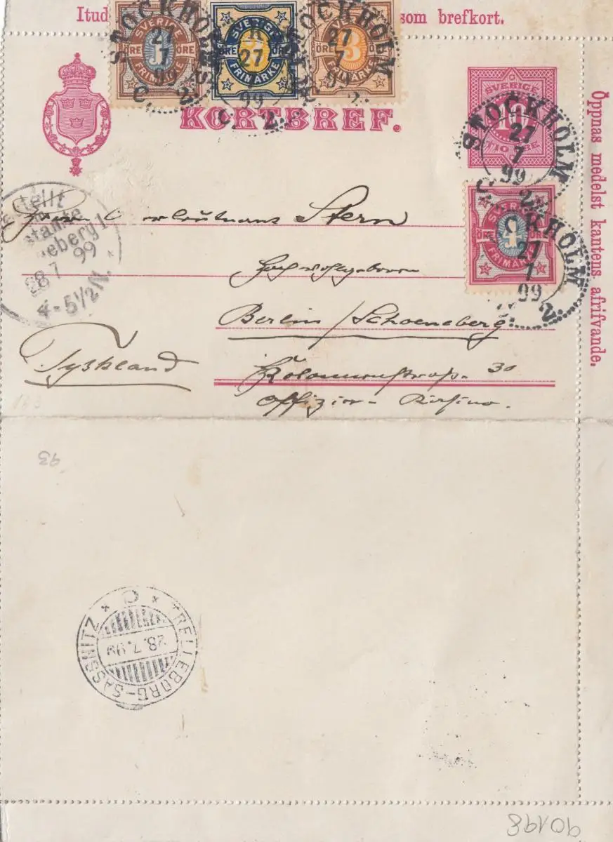 Suède: 1899: Stockholm à Berlin.