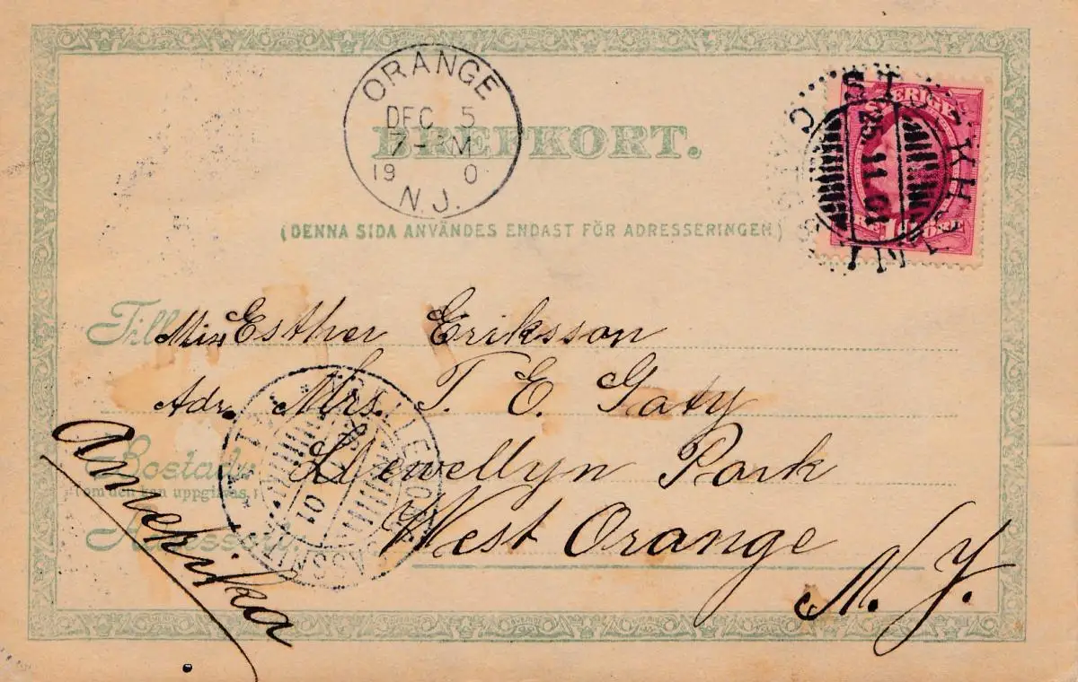 Suède: 1901: Photo AK vers Orange aux États-Unis