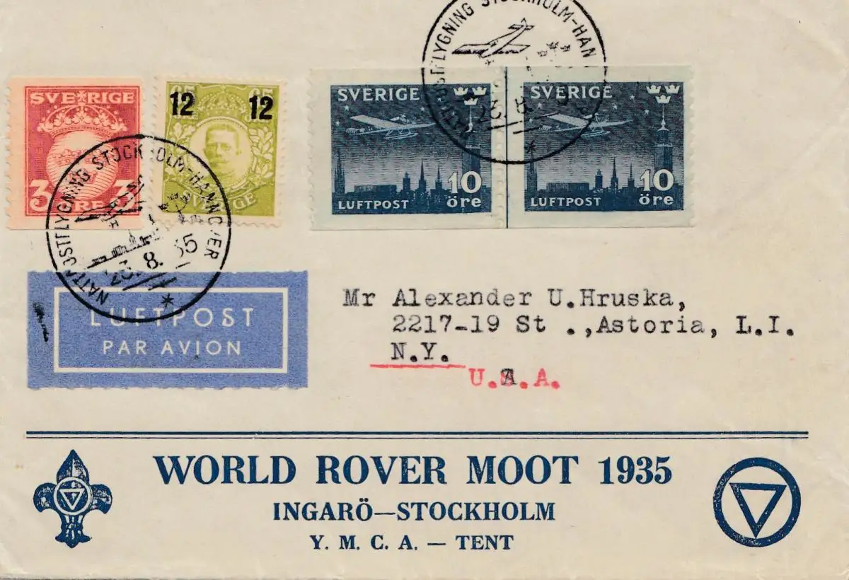 Suède: 1935: Lufpost Ingarö-Stockholm vers les États-Unis, raquette de gymnastique