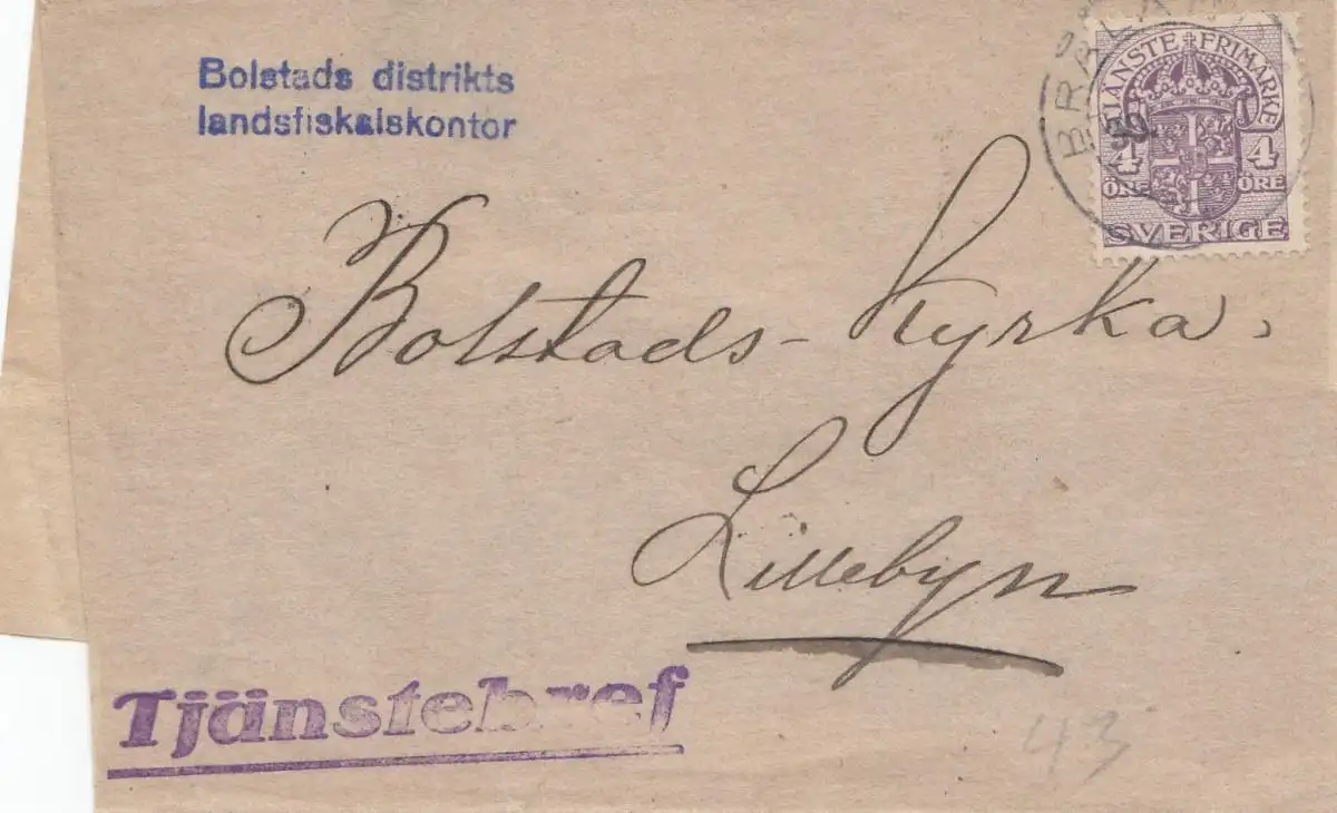 Suède: Streifband: Bolstads districts landsfiskalkontor