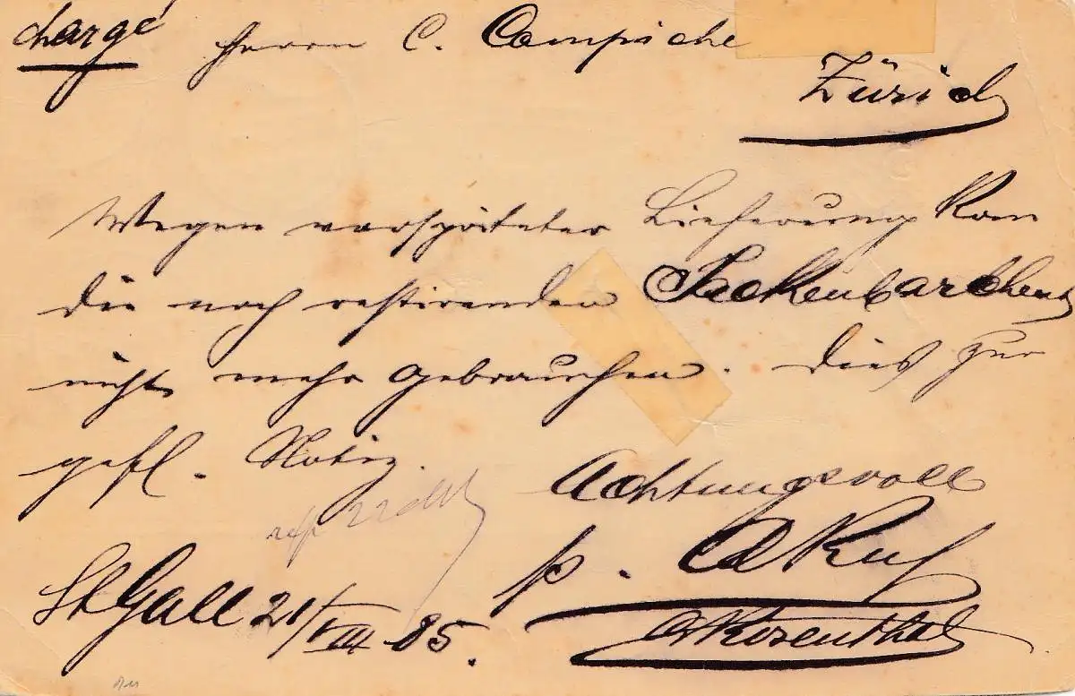 Suisse: 1883: Saint-Gall vers Zurich, Charge