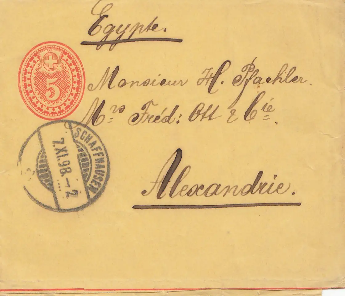 Suisse: 1898: Tout le sujet Streifband Schaffhouse vers Alexandria