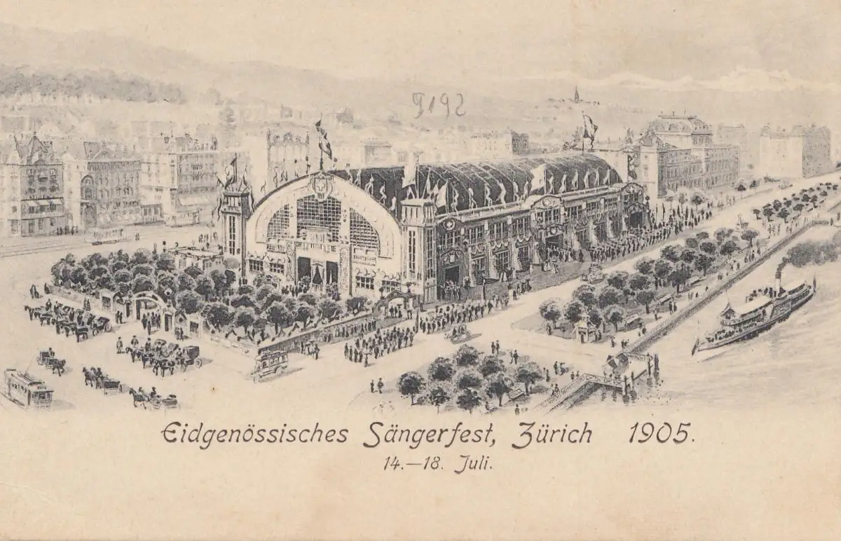 Suisse: 1905: Zurich, Bâle, carte de bord Festival des chanteurs