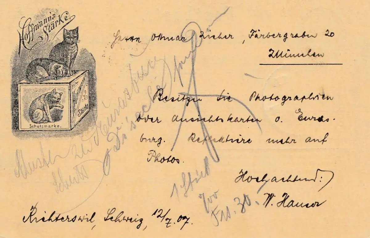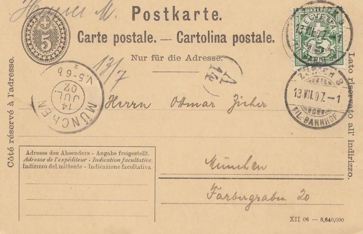 Suisse: 1907: Richterswil vers Munich