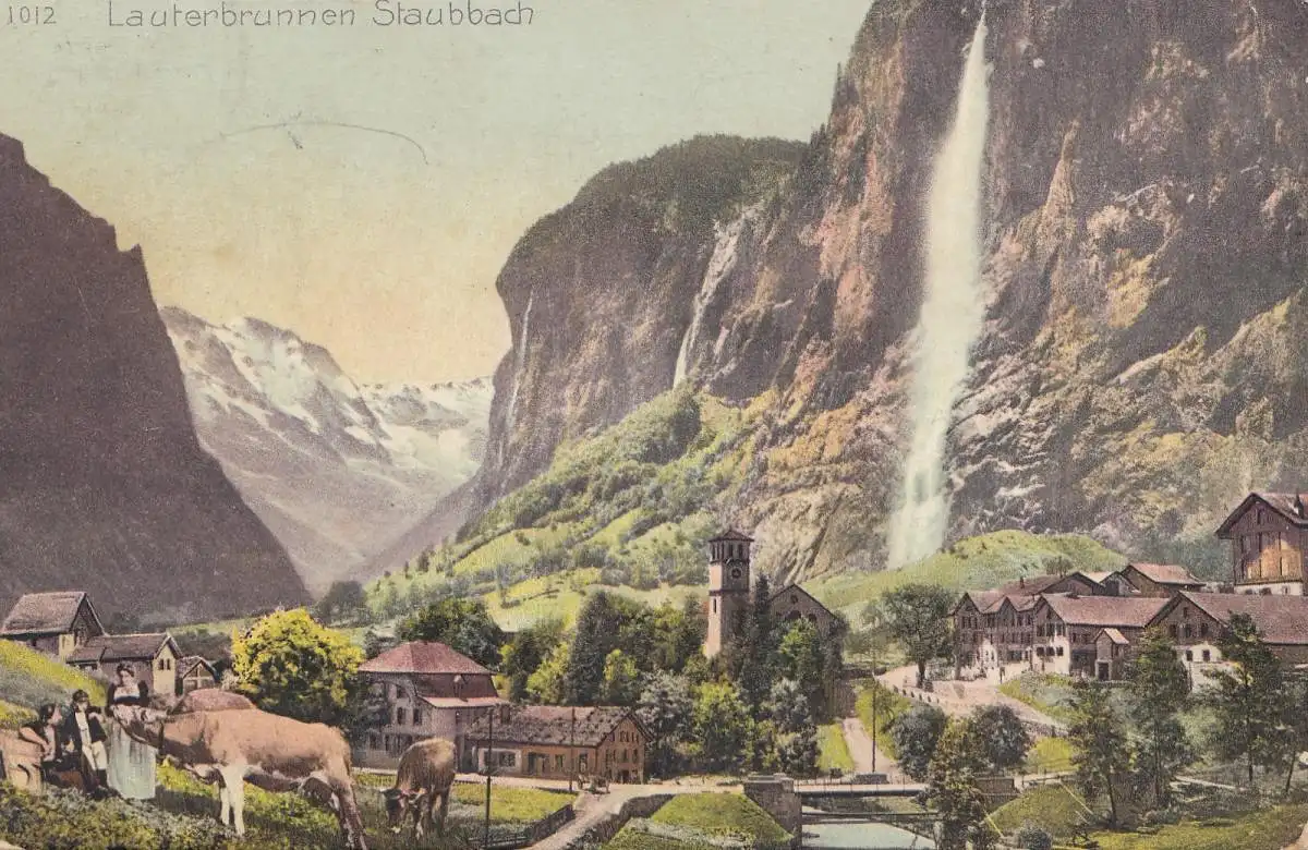 Suisse: 1908: Carte de vue Lauterbrunnen Staubbach, à Düsseldorf, retour