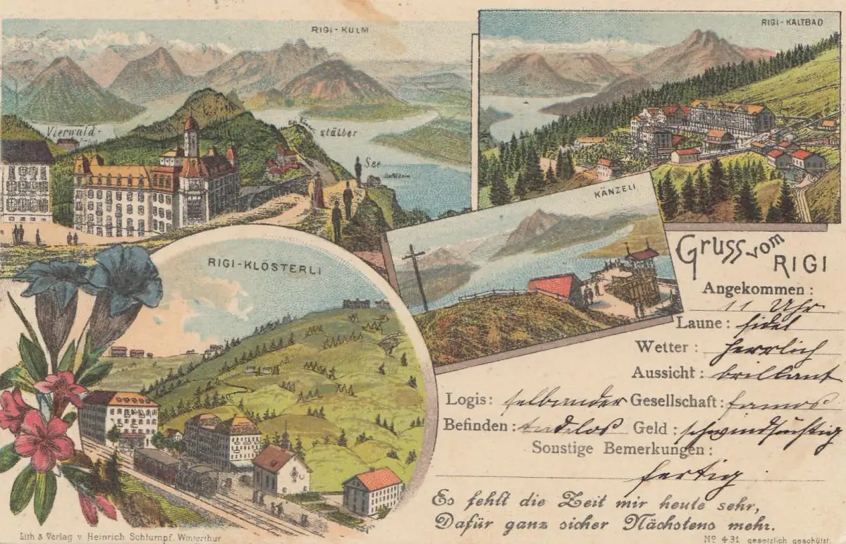 Suisse: 1908: Carte de vue Rigi