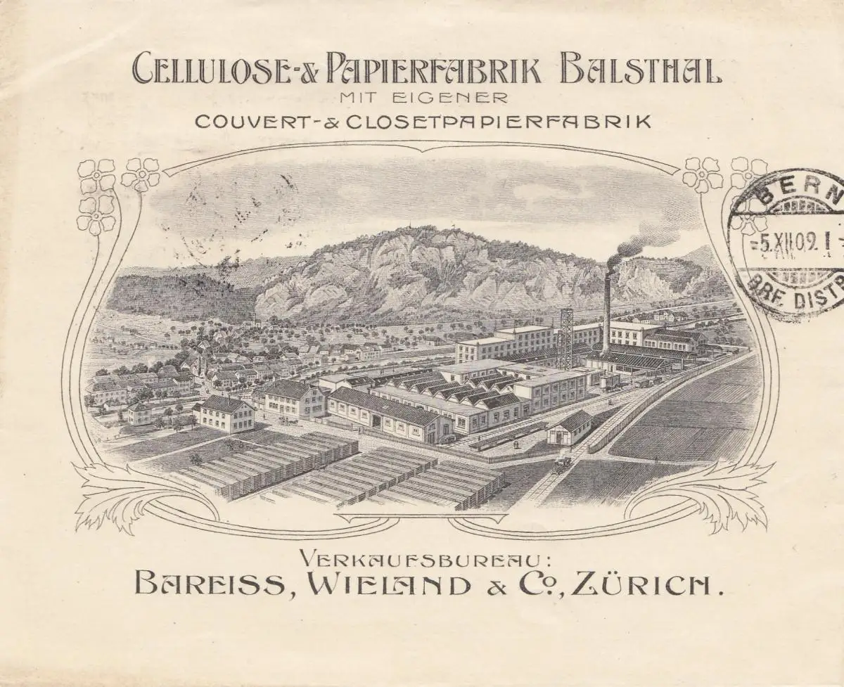 Suisse: 1909: Lettre de Zurich à Berne, cellulose Papierfabrik, image arrières.