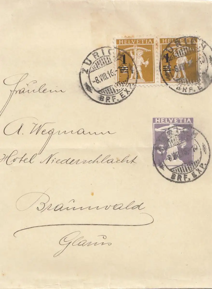 Suisse: 1916: Zurich vers Braunwald, Streifband