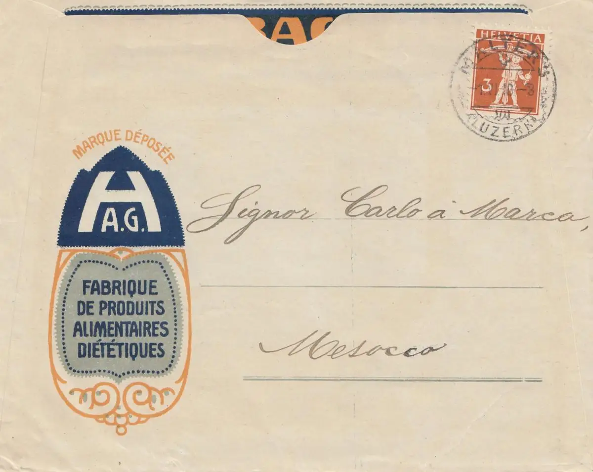 Suisse: 1918: M. Maters avec publicité Zwieback, Luzern