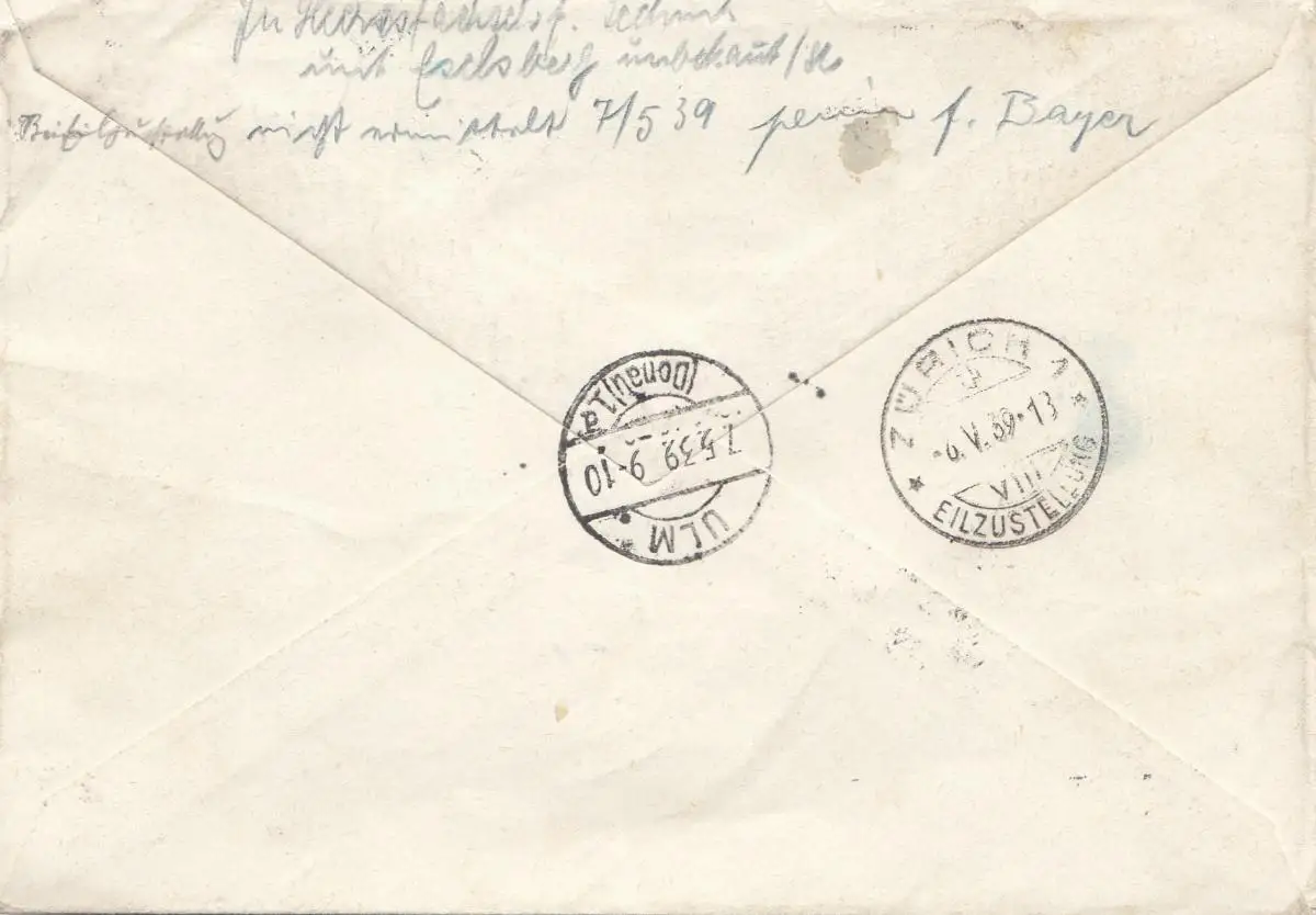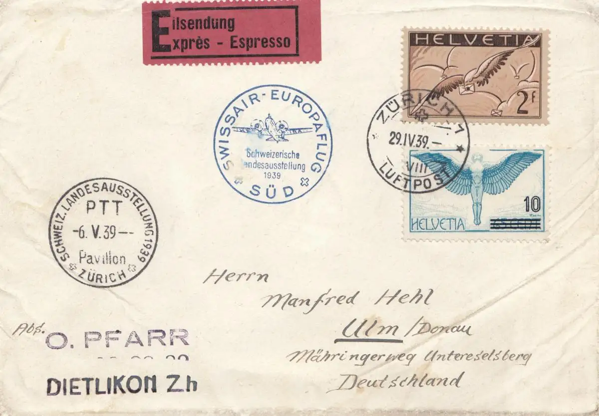 Suisse: 1939: Dietlikon d'Ulm, Swissair, Eilbote