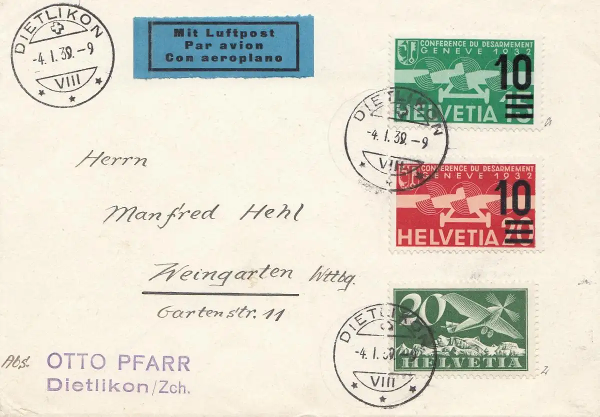 Suisse: 1939: Dietlikon vers Weingarten, Aéroport
