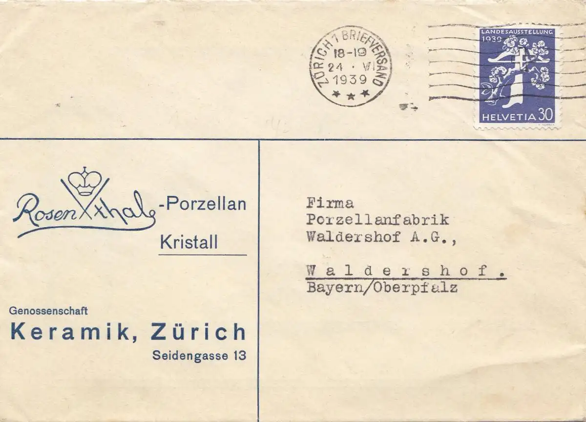 Suisse: 1939: Zurich après Waldershof, Céramique, Rostenthal