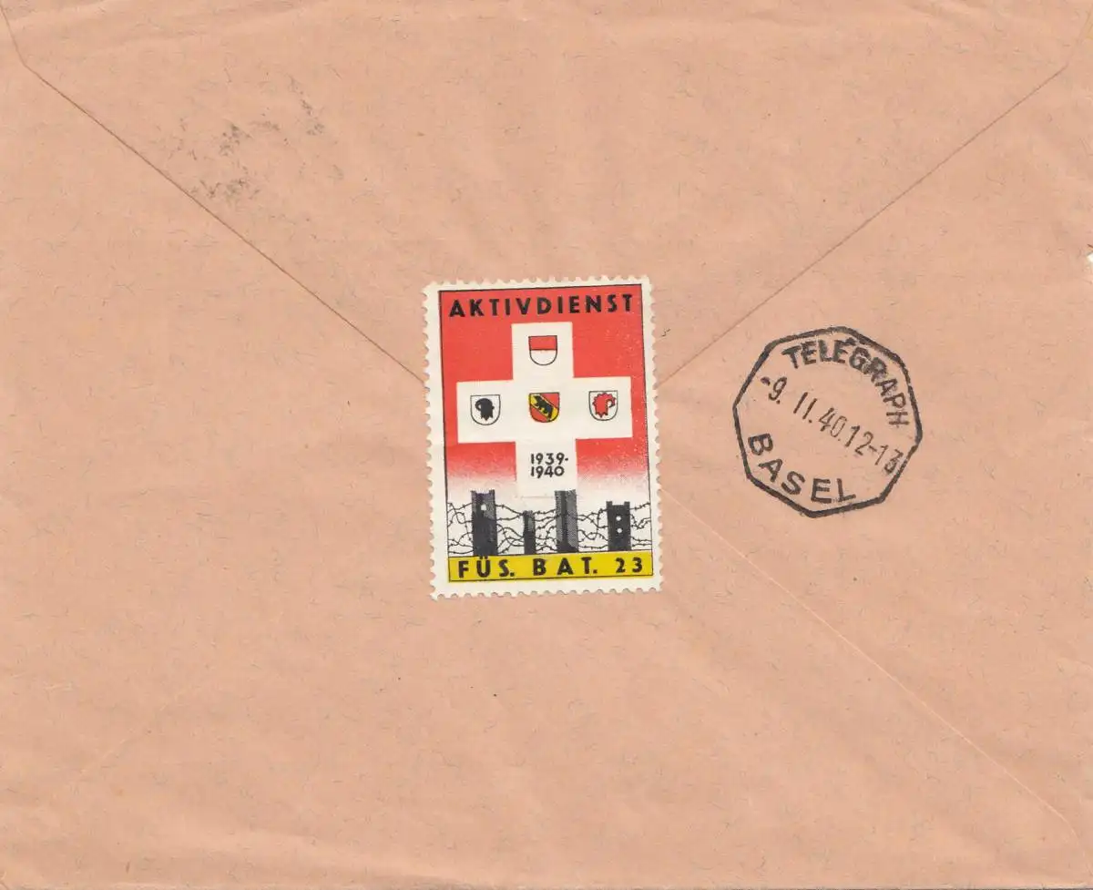 Suisse: 1940: Eilbote Basel, Vignette Füs. Bat. 23, Actifdienst